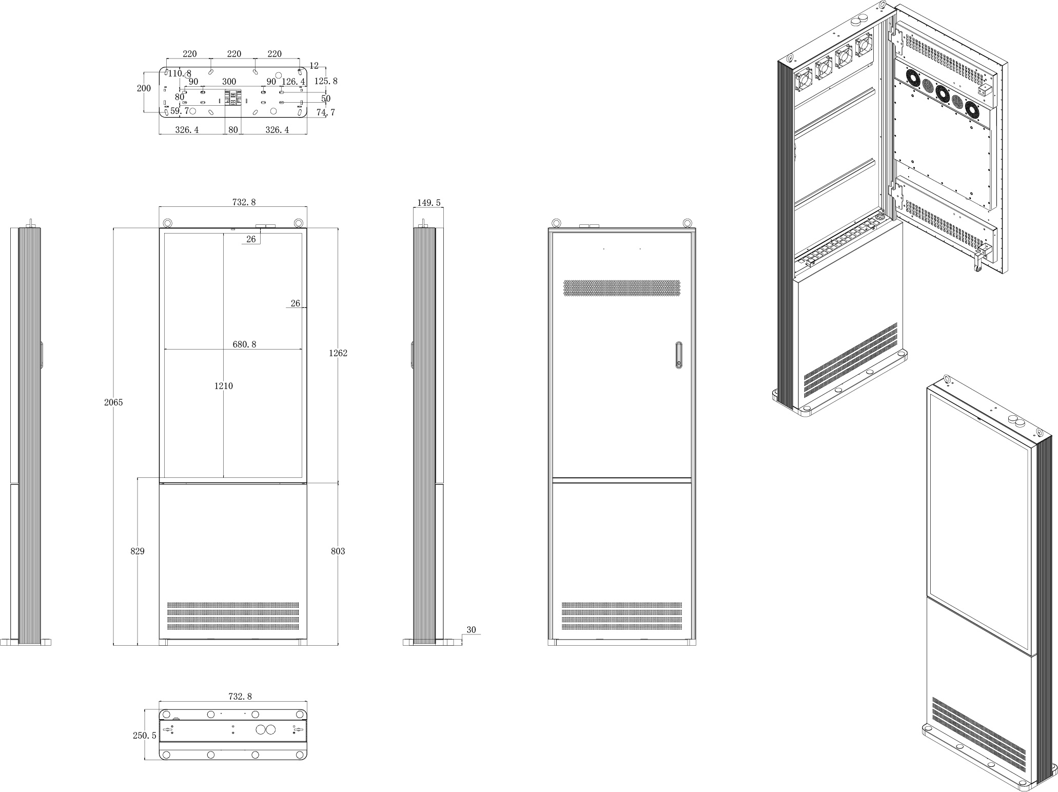 Dimensions: 2065(H) x 732(W) x 149(D) mm